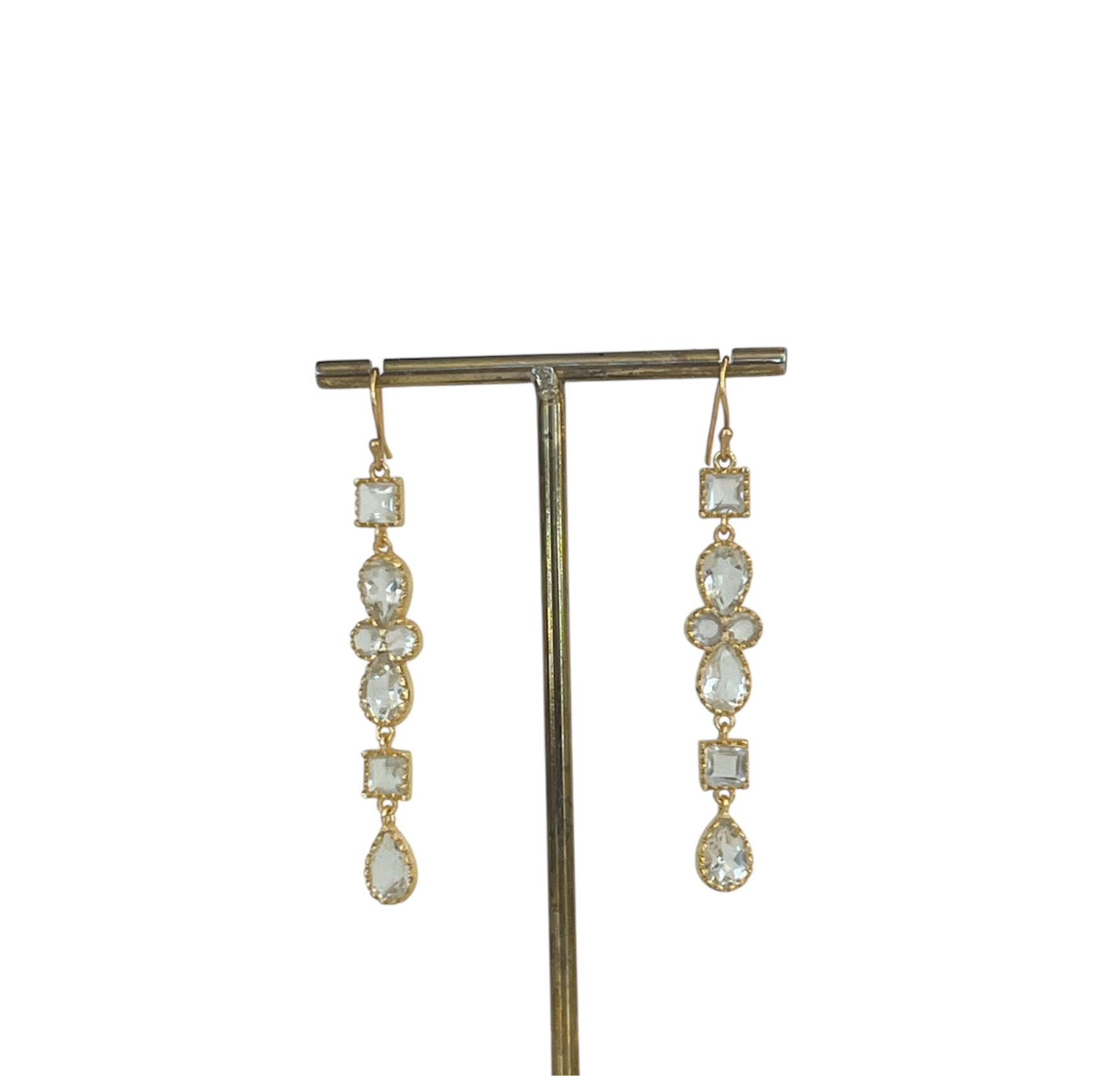 Paire de boucles d'oreilles plaquées or & pierres en améthyste verte