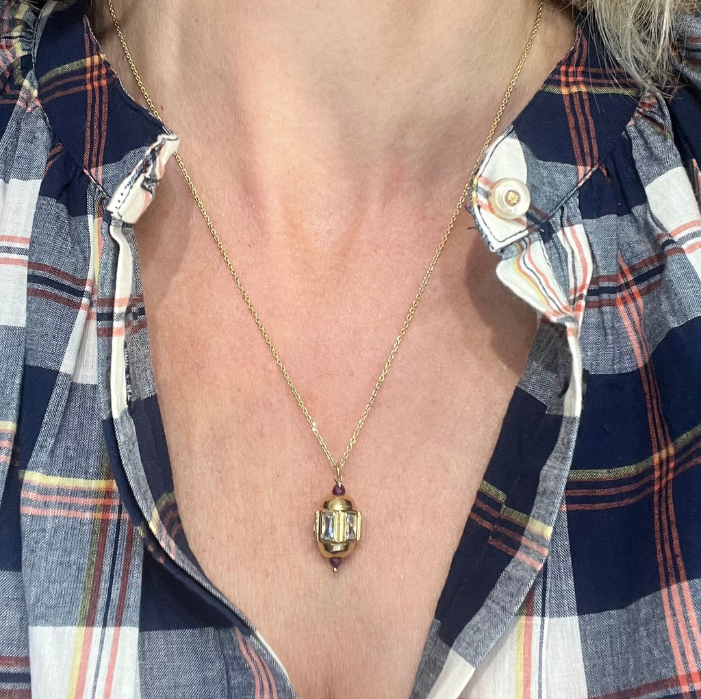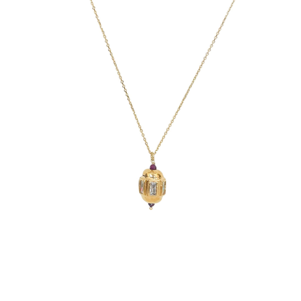 Collier doré à l'or fin avec en son centre un pendentif orné de zircons ainsi que de rubis.