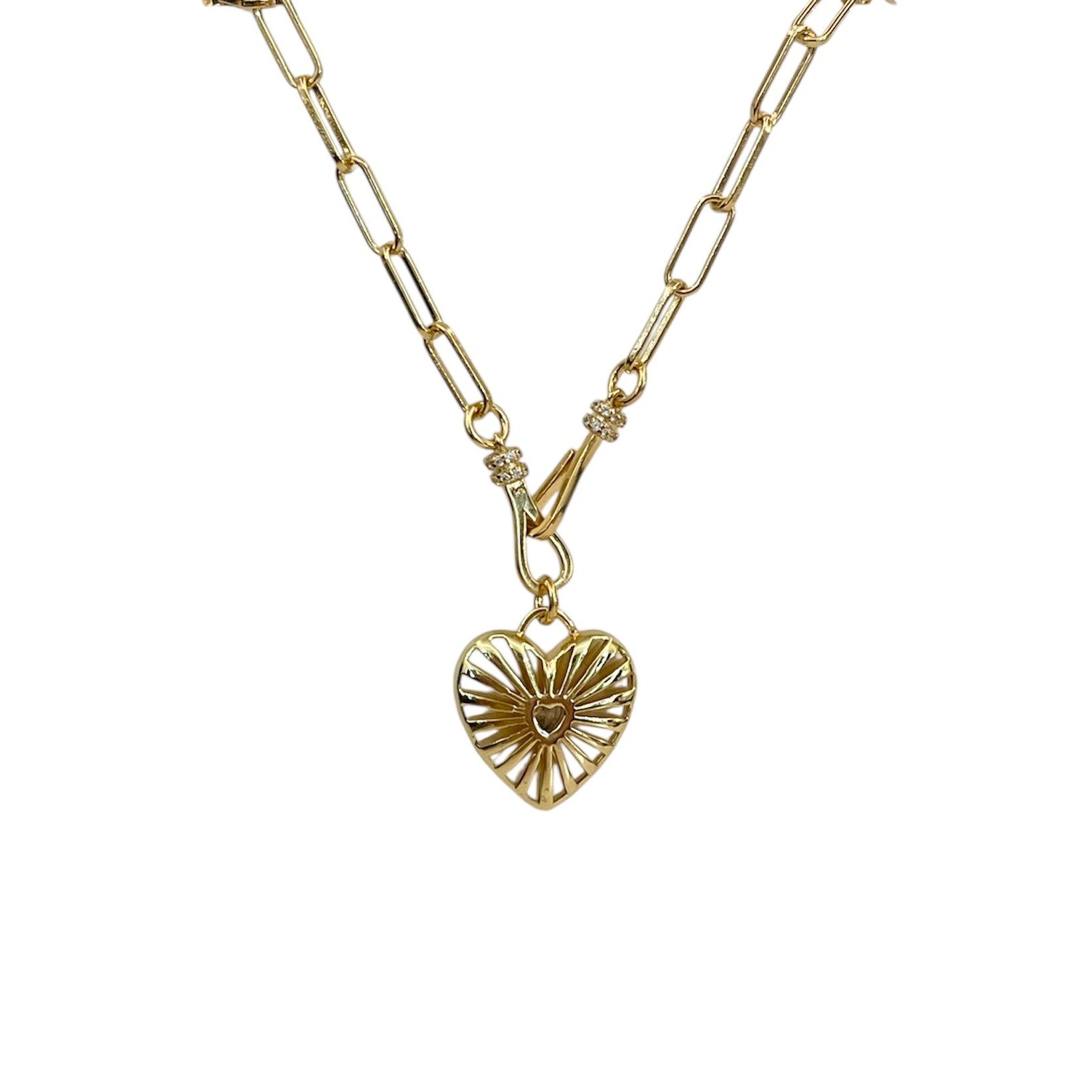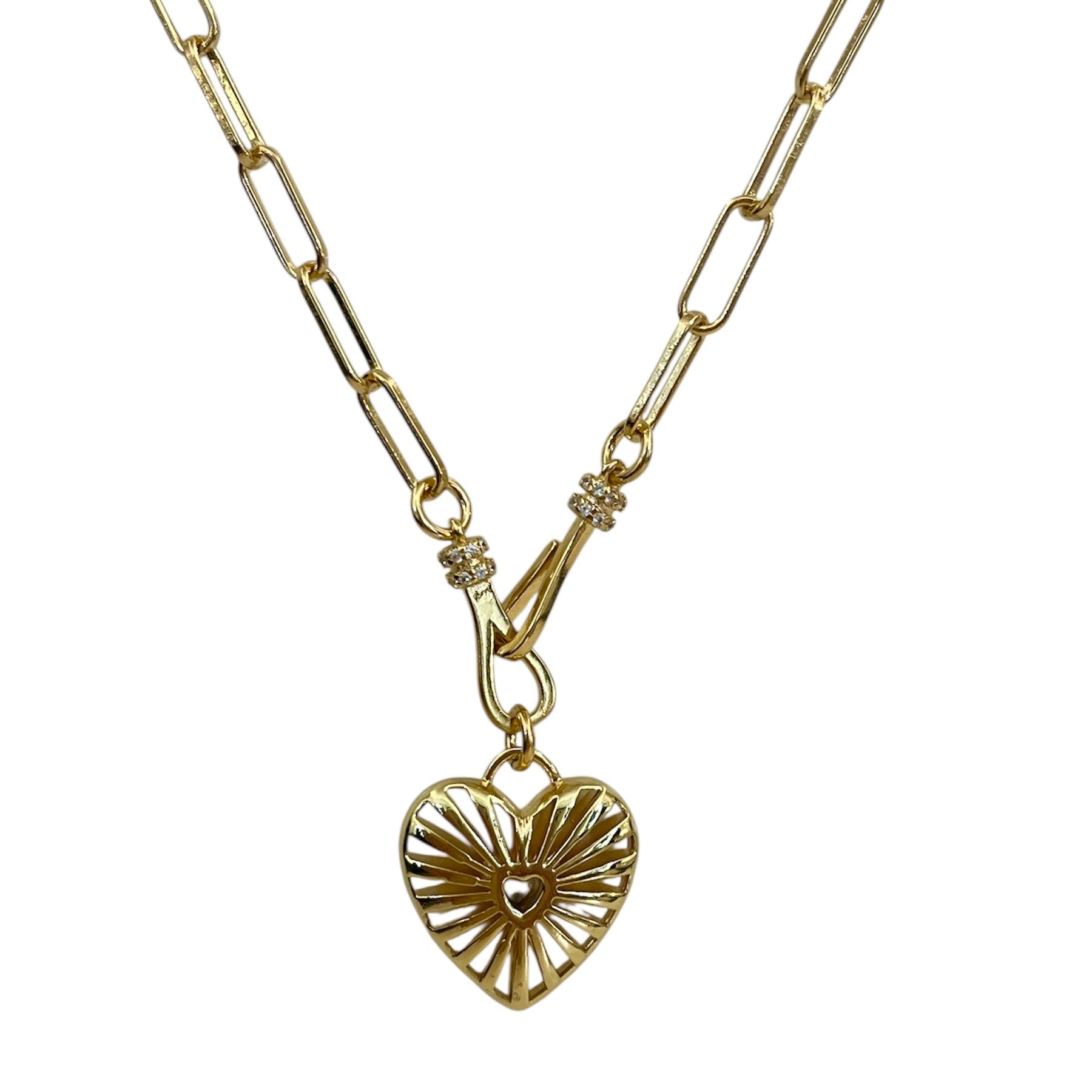 Collier avec pendentif coeur ajouré doré avec en son centre un zircon blanc