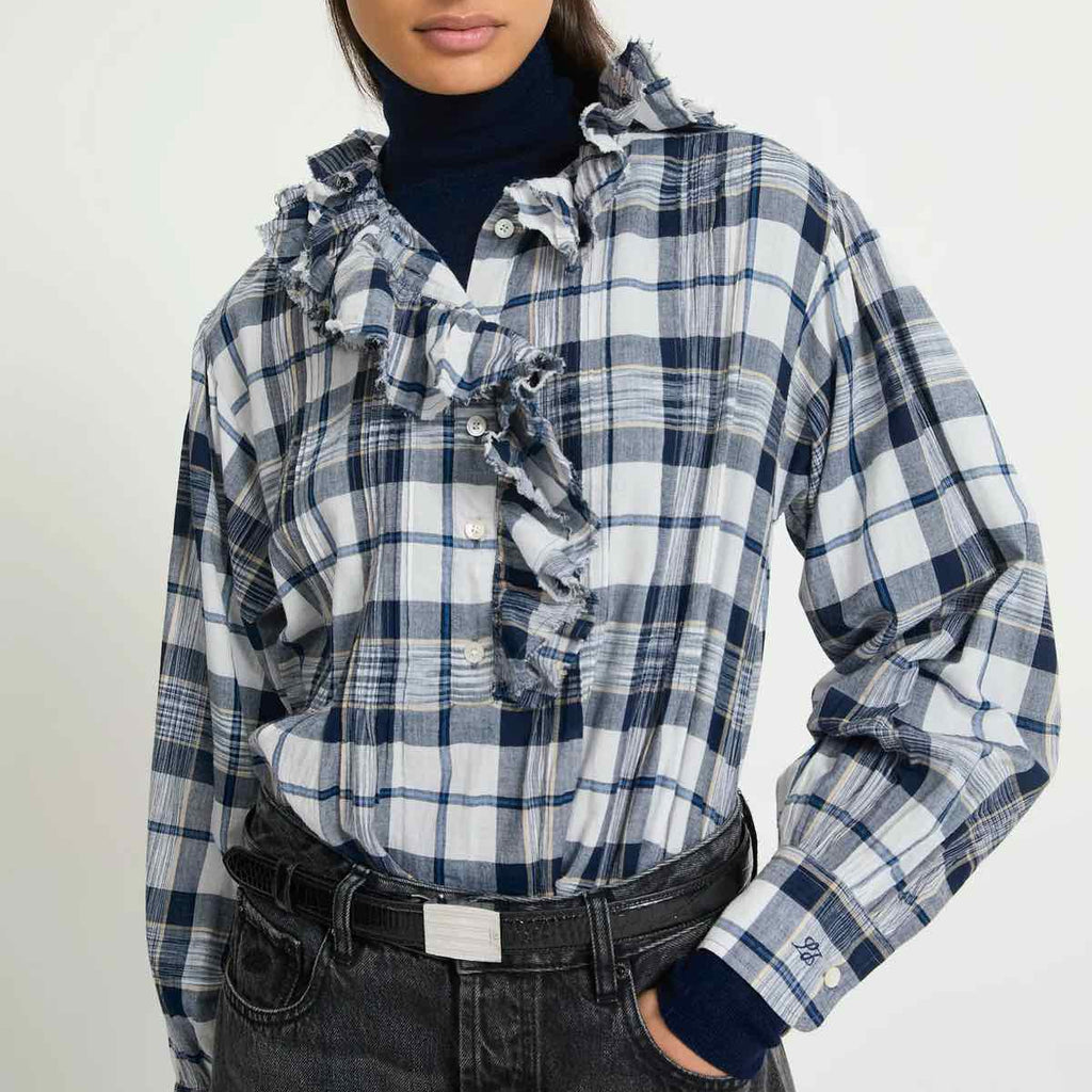 Manches droites froncées aux poignets avec monogramme brodé au poignet