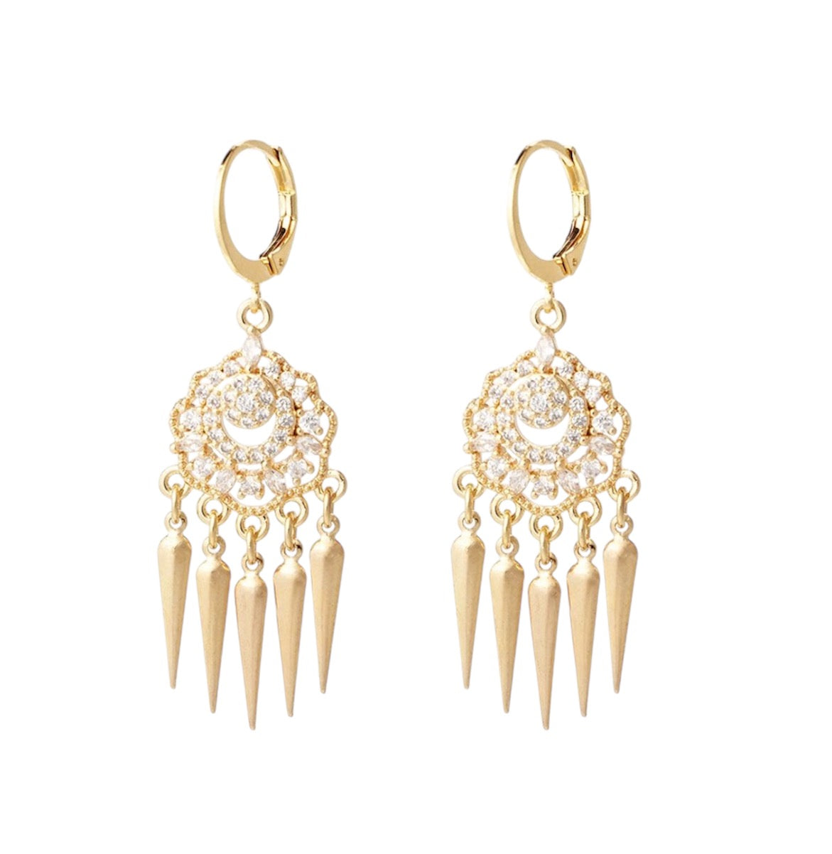 Paire de boucle d’oreille en laiton plaqué or 18 carats et zirconium