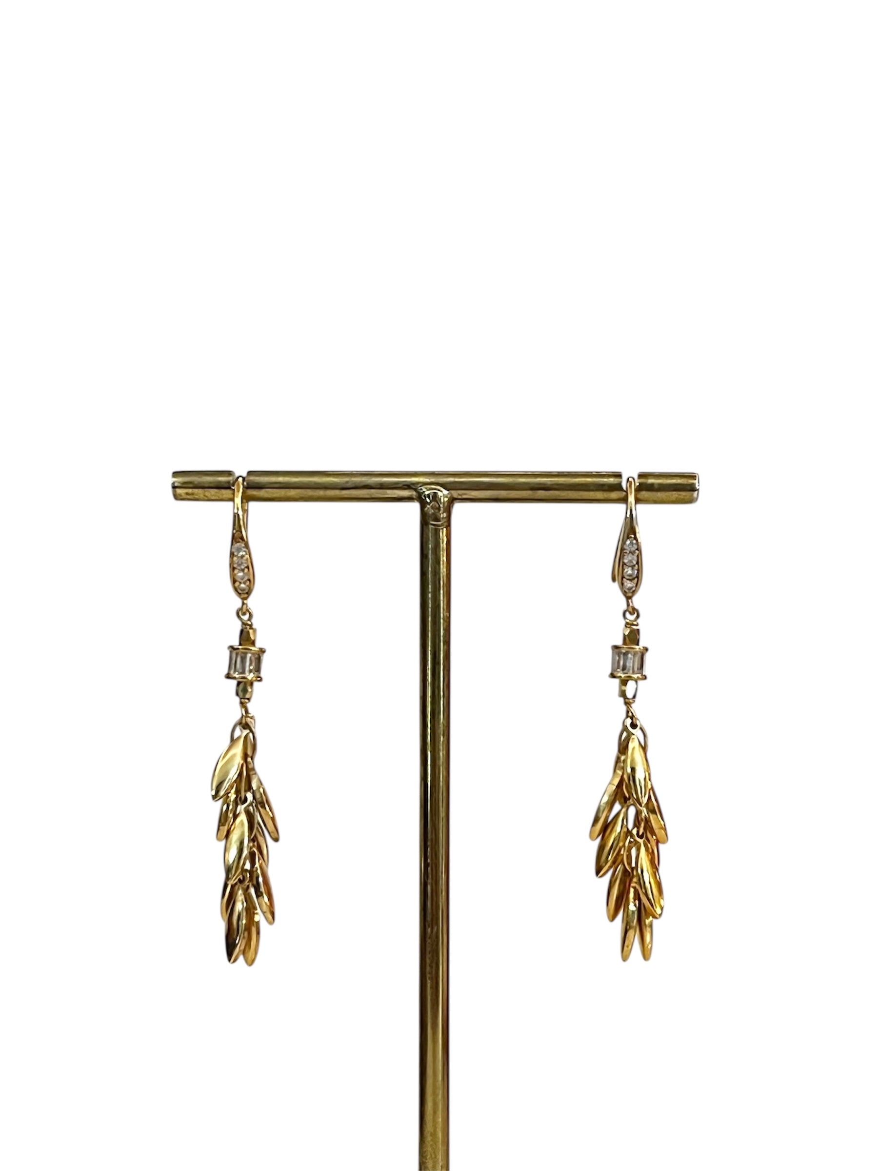 Paire de boucles avec anneau en zircons blancs et pampilles dorées