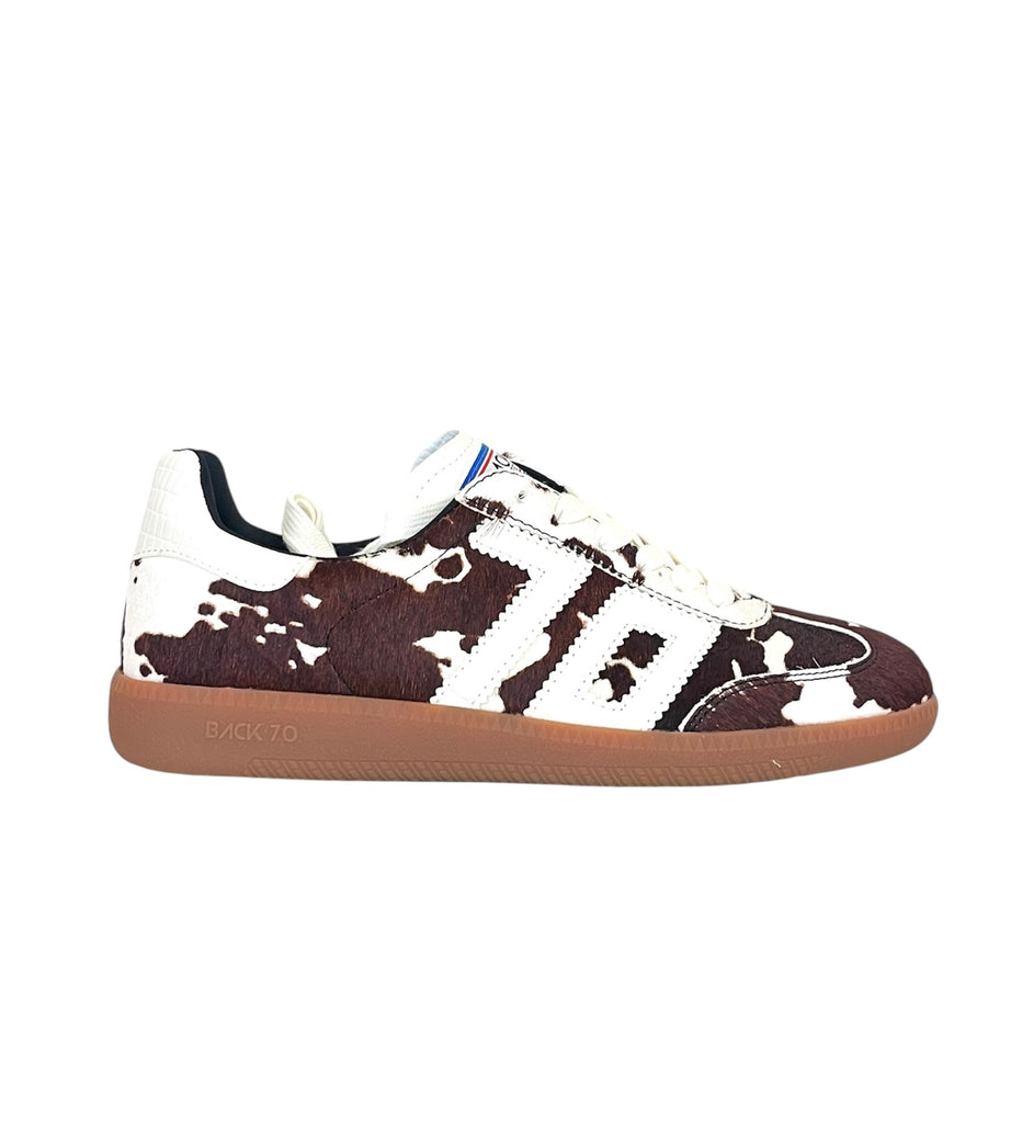 Nouvelle collection de sneakers Cloud de la marque Back 70 avec un imprimé vache.