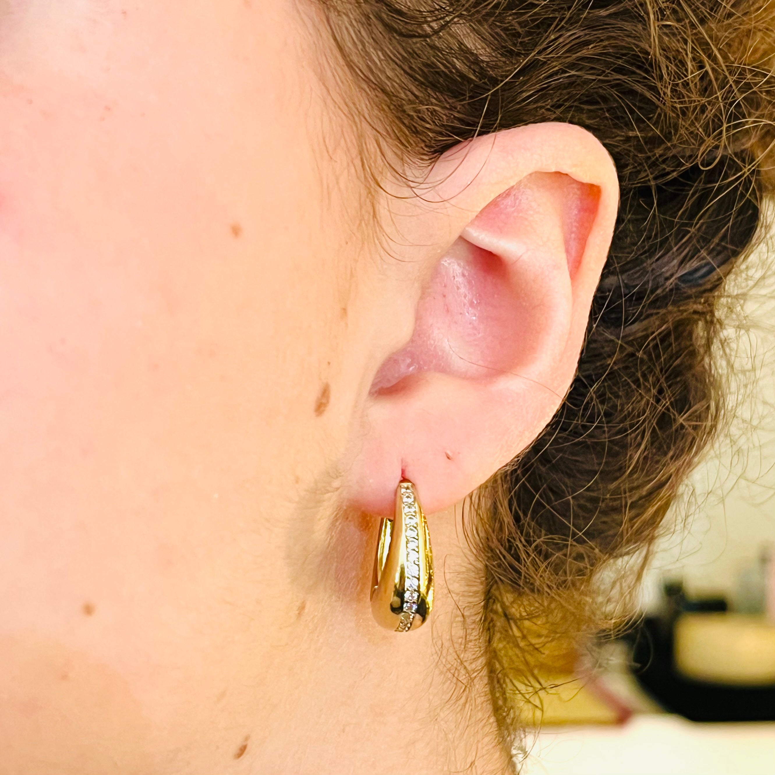 Créoles dorées larges avec zircons blancs