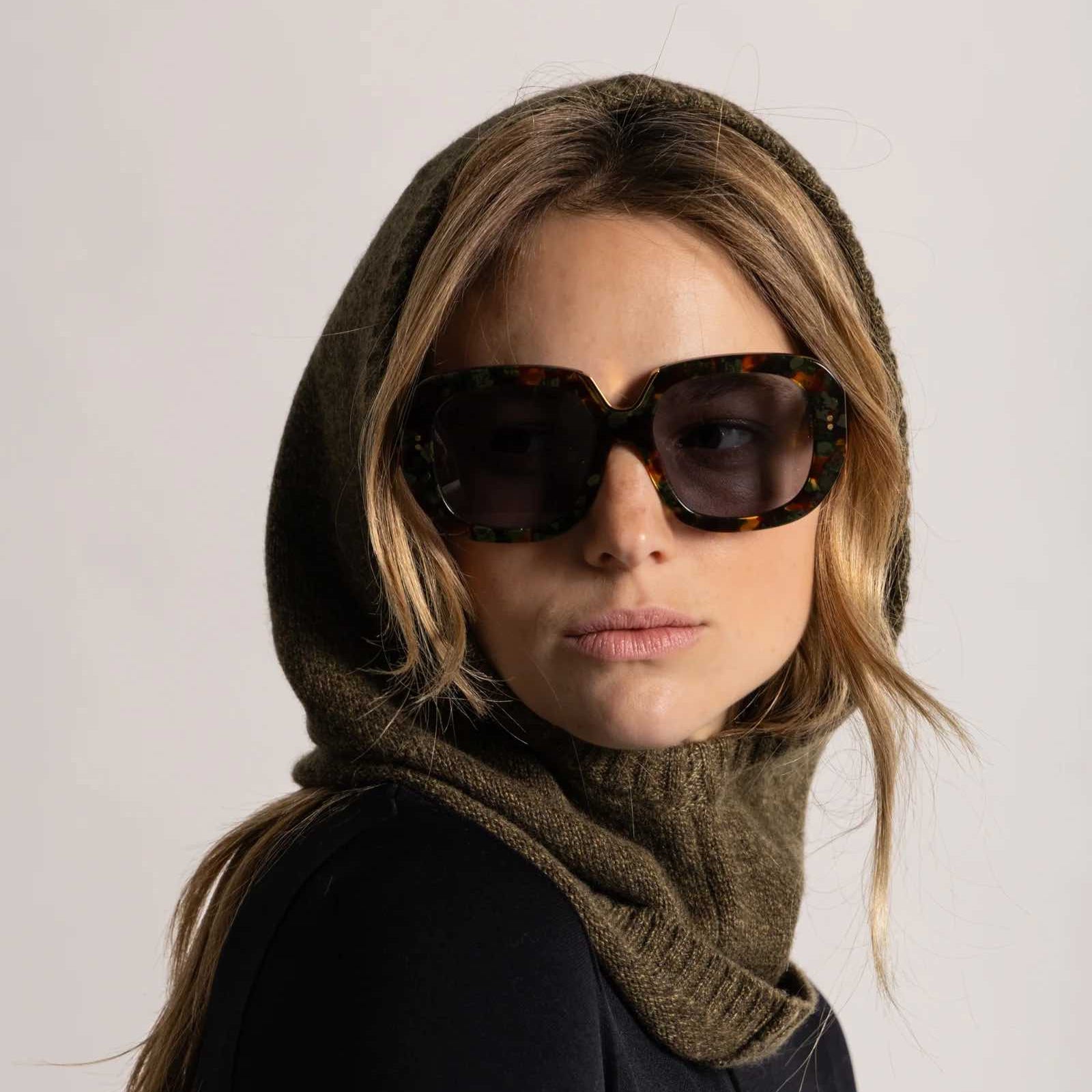 Cagoule 100 % cachemire 2 fils de couleur kaki