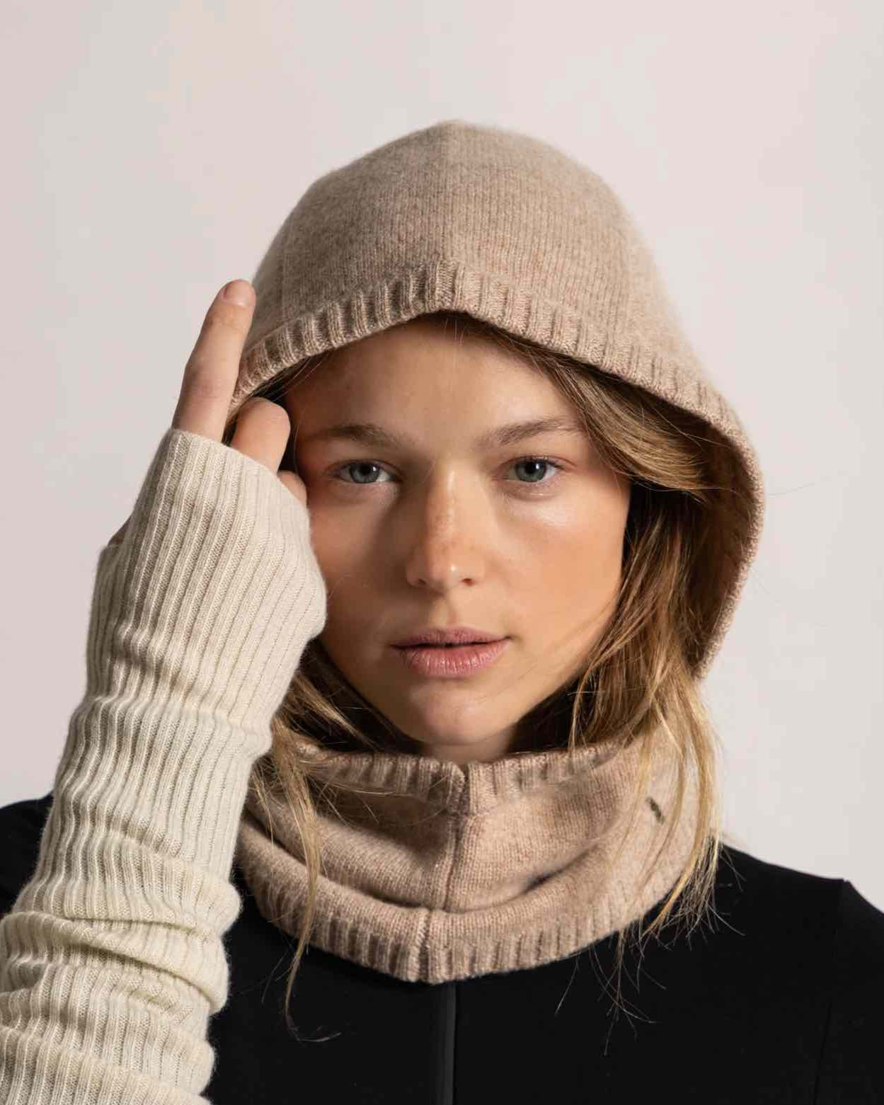 Cagoule 100 % cachemire 2 fils de couleur beige