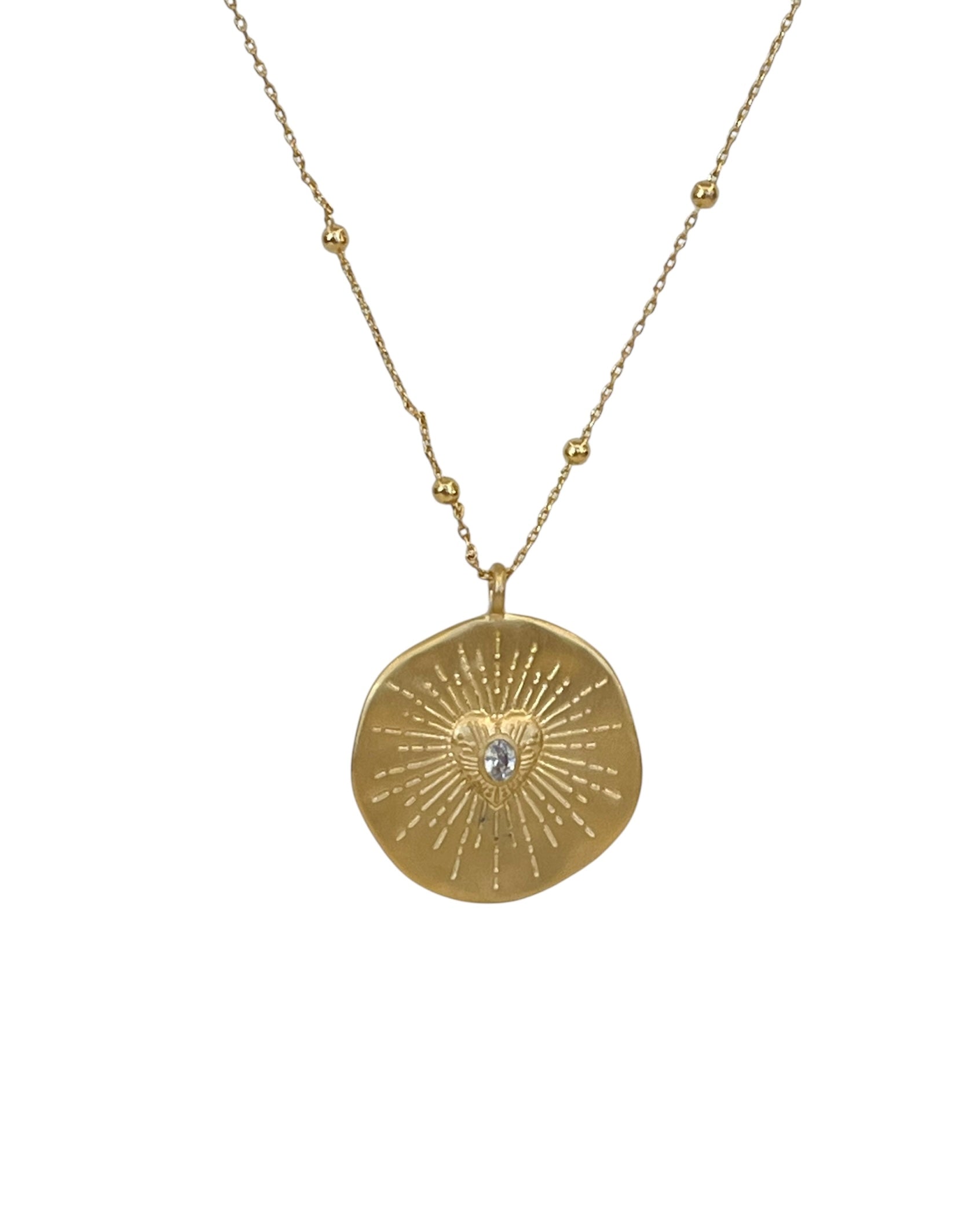 - Chaine fine avec en son centre une piece irrégulière avec zircon blanc en forme de coeur.