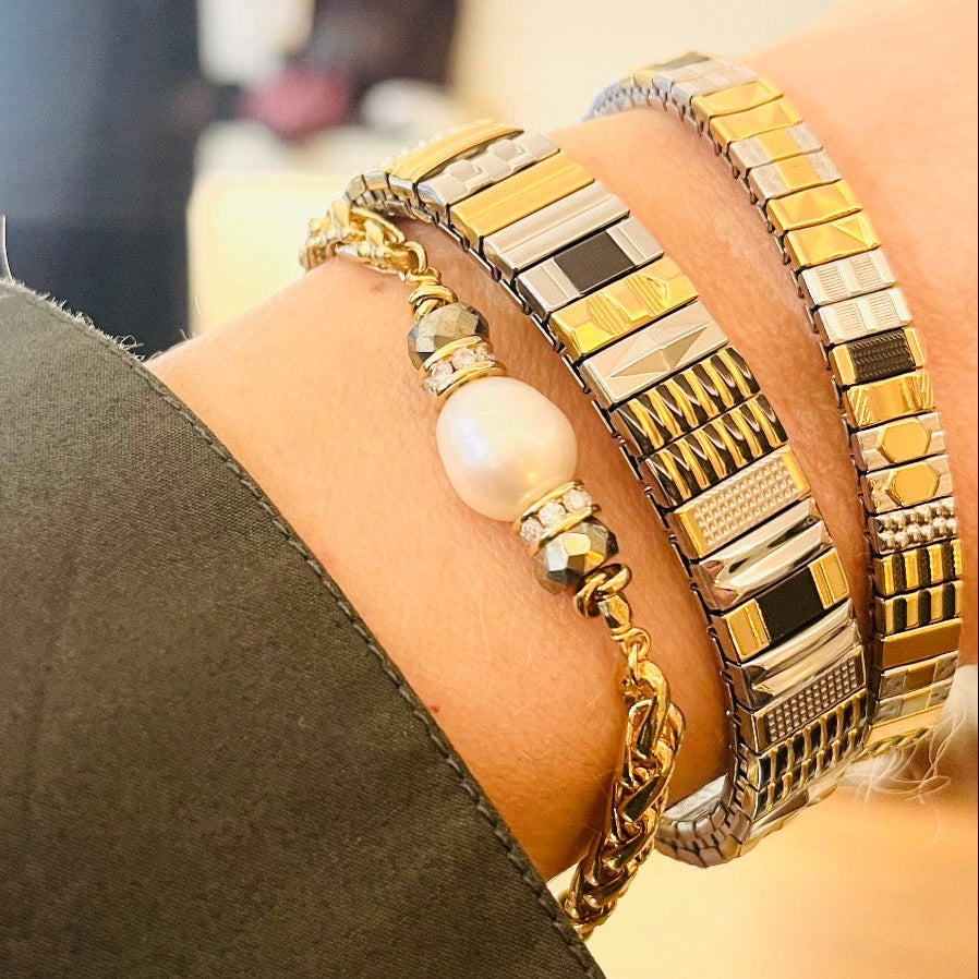 Bracelet Paloma doré perle blanche pyrite - Hanka In