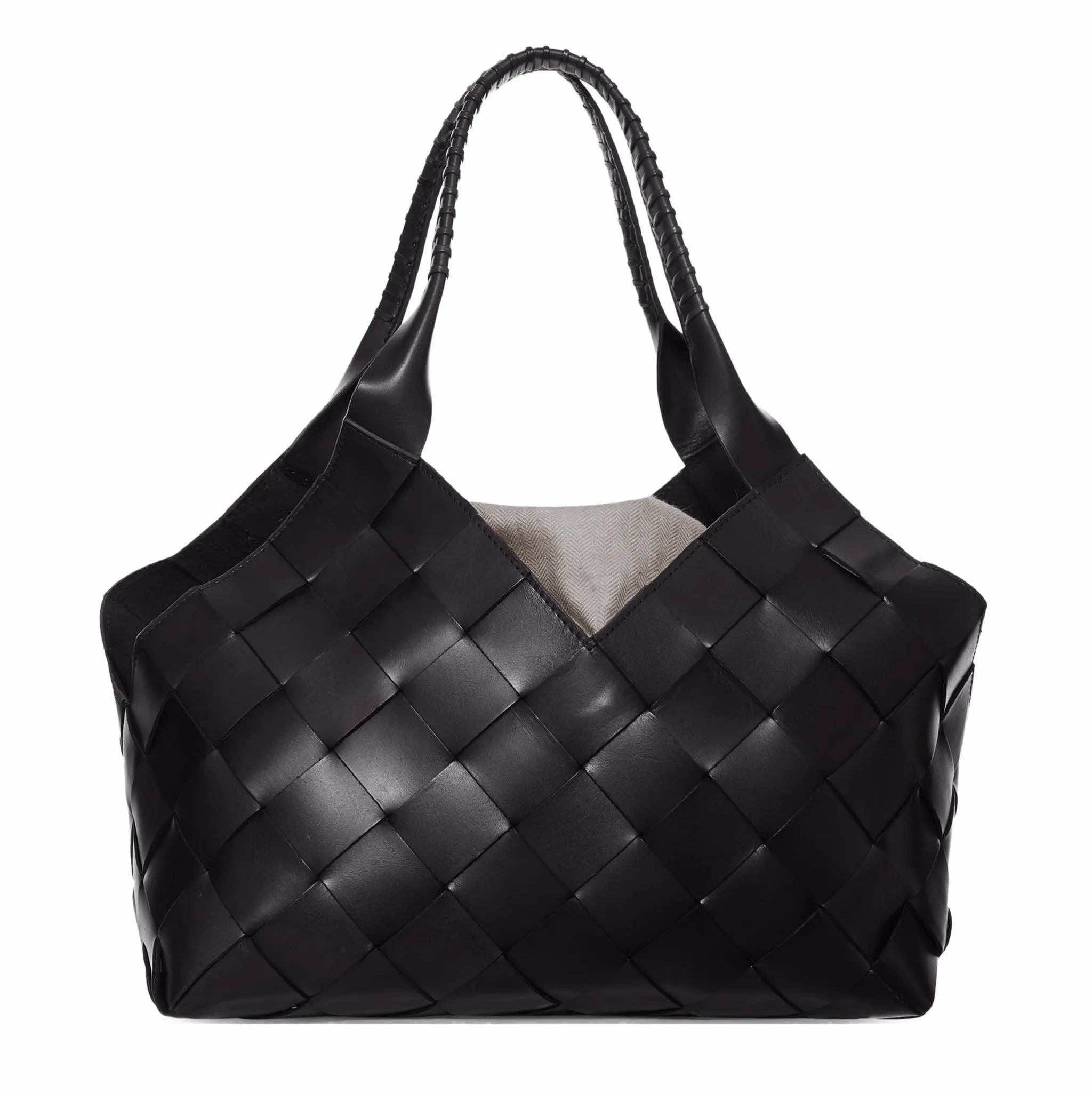 Cabas avec tressage large en cuir de couleur noir