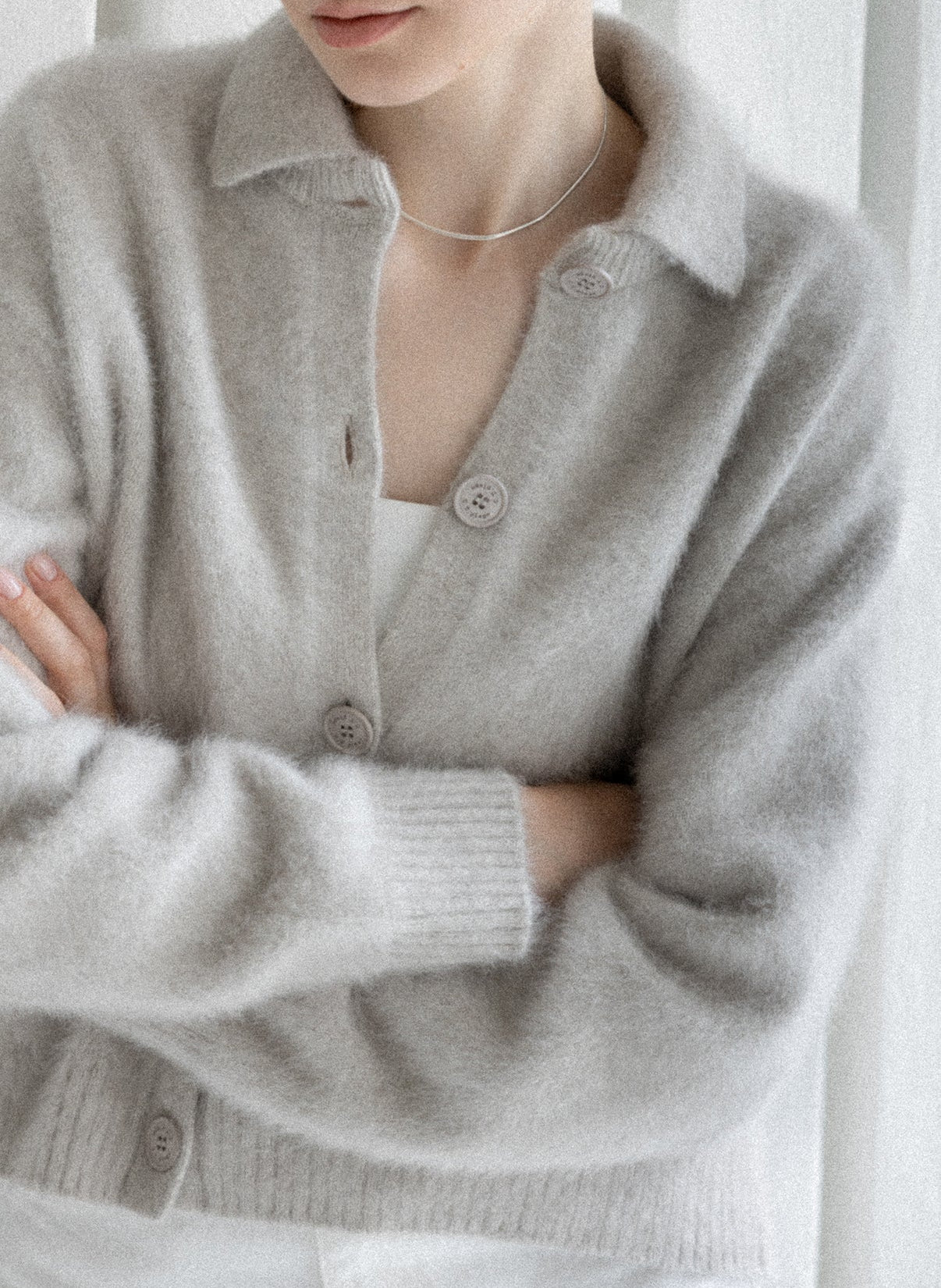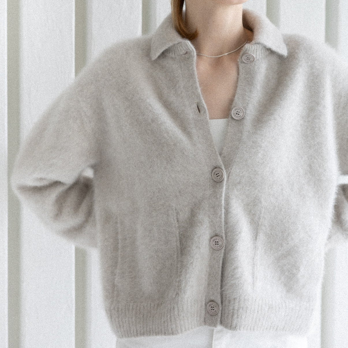 Nouvelle matière léger et chaud obtenue par le brossage des poils de renard mélangés au cachemire.